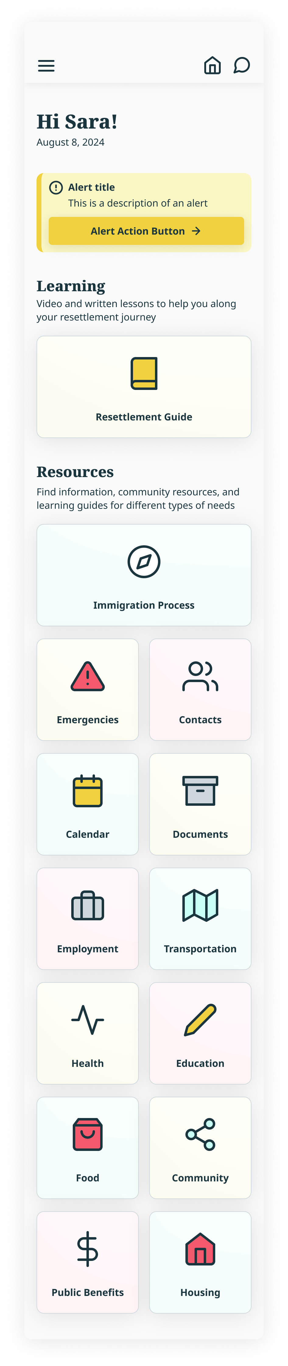Based on our research into the challenges refugees and immigrants face during the resettlement process, we focused our design on goals that address the two main challenges we identified with corresponding features: