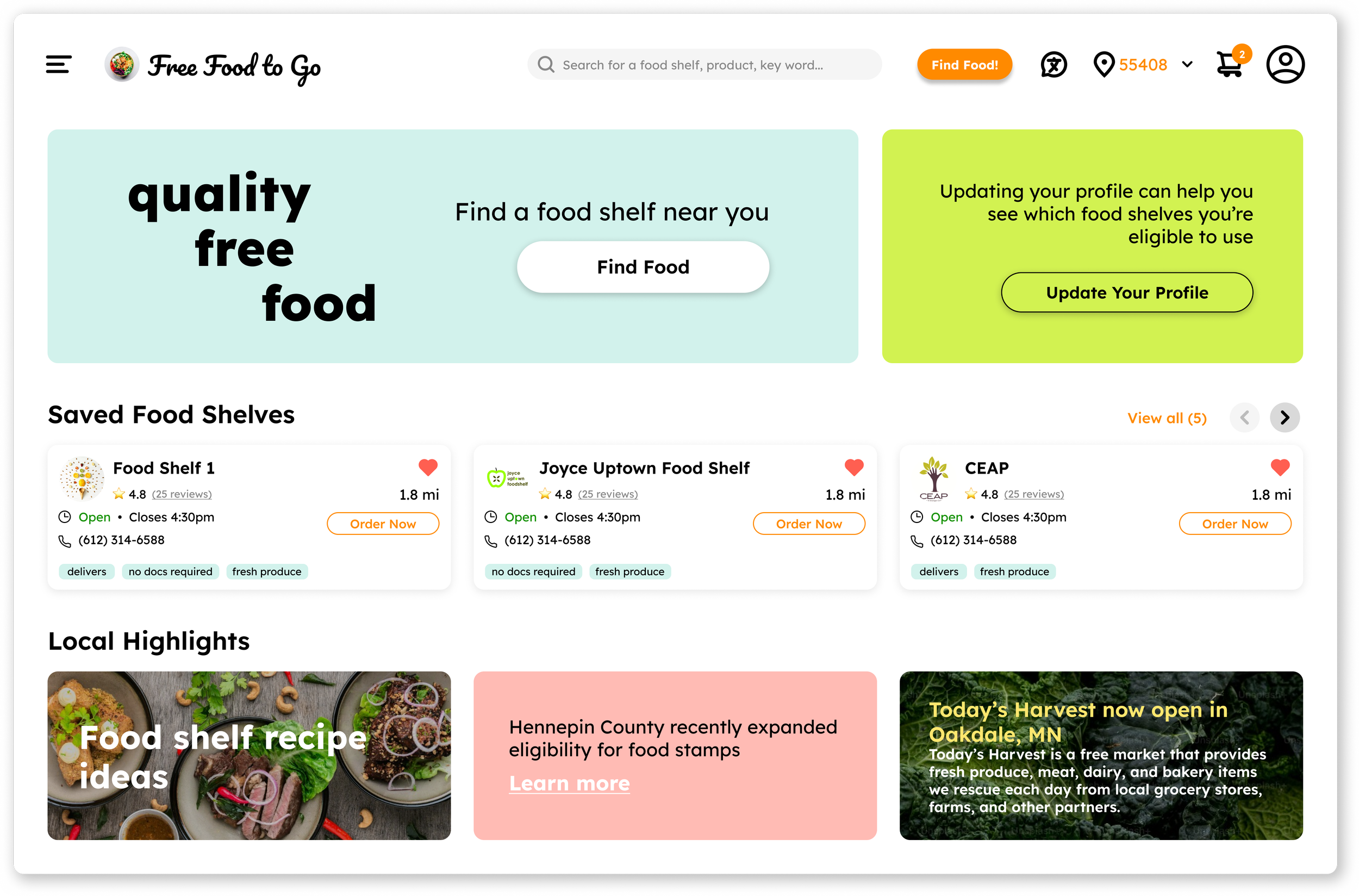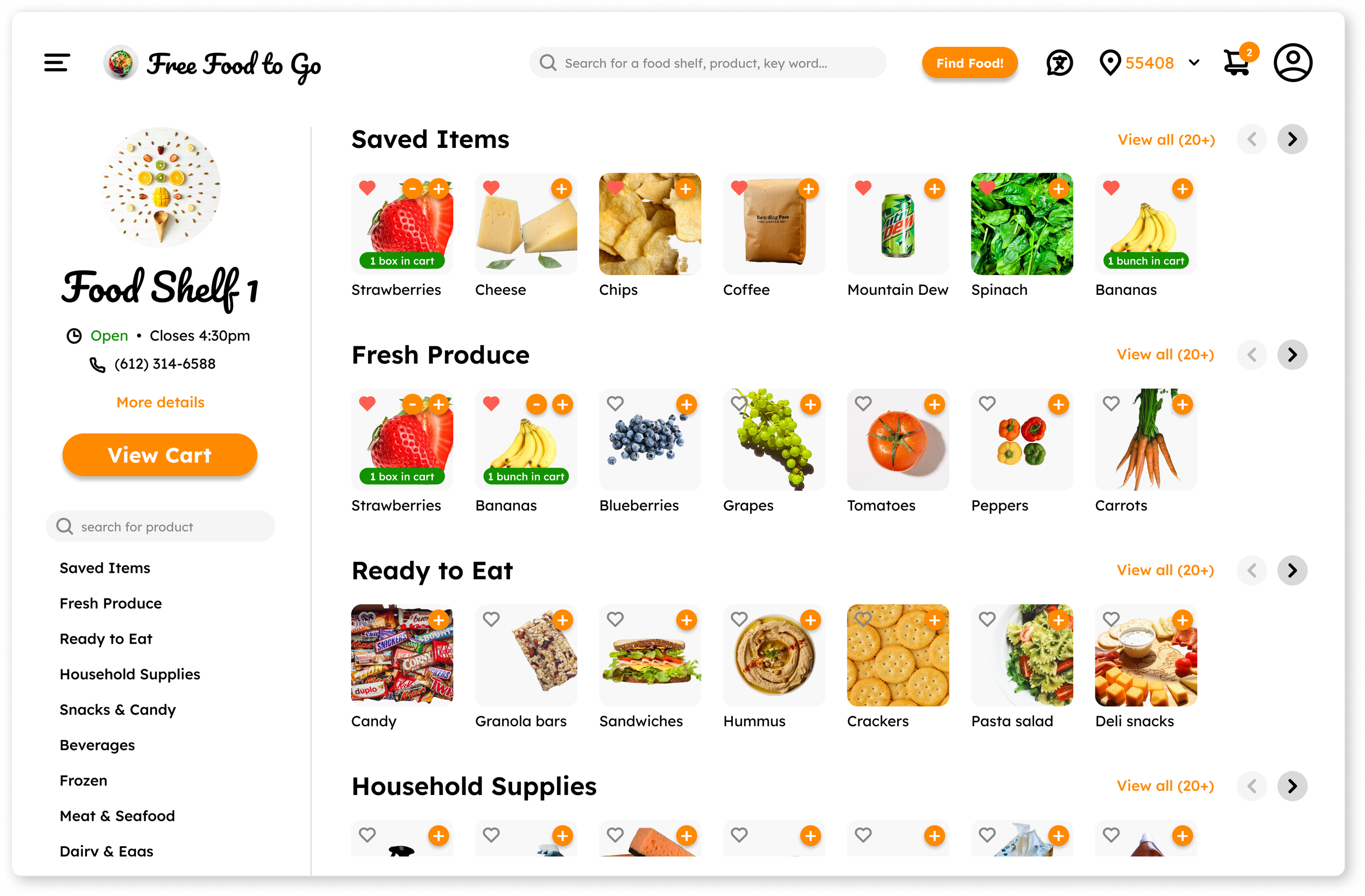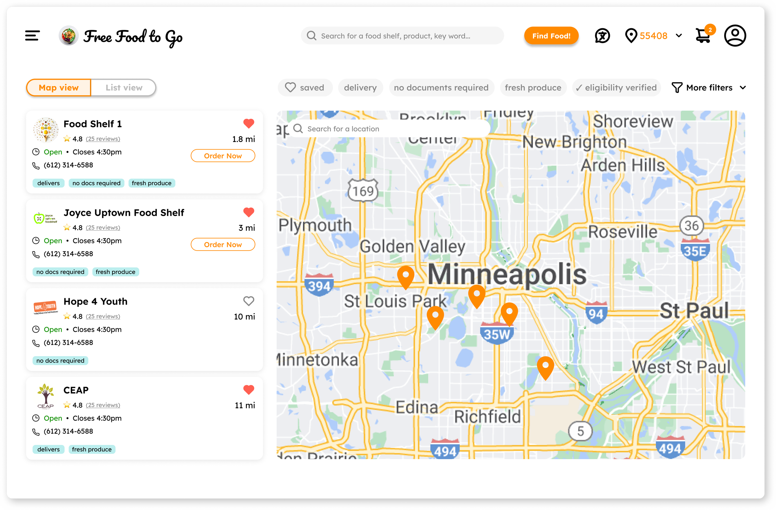 There is currently no centralized way to find food shelves and order food from them in the Twin Cities.