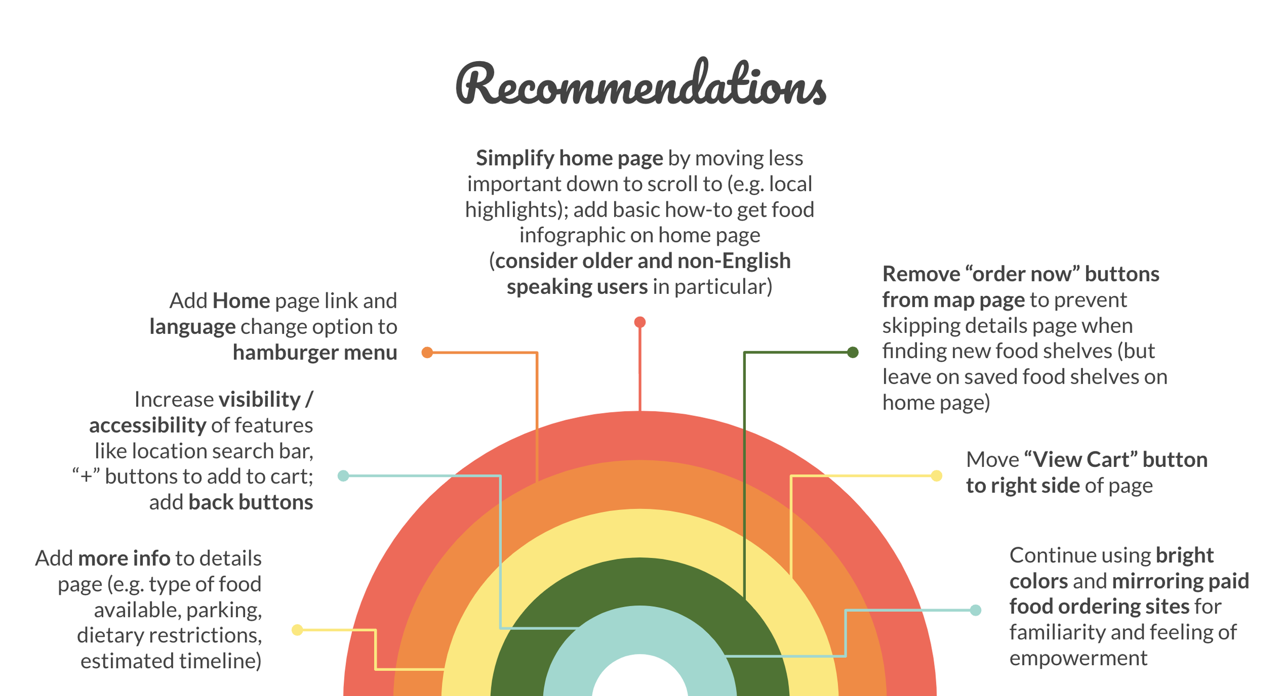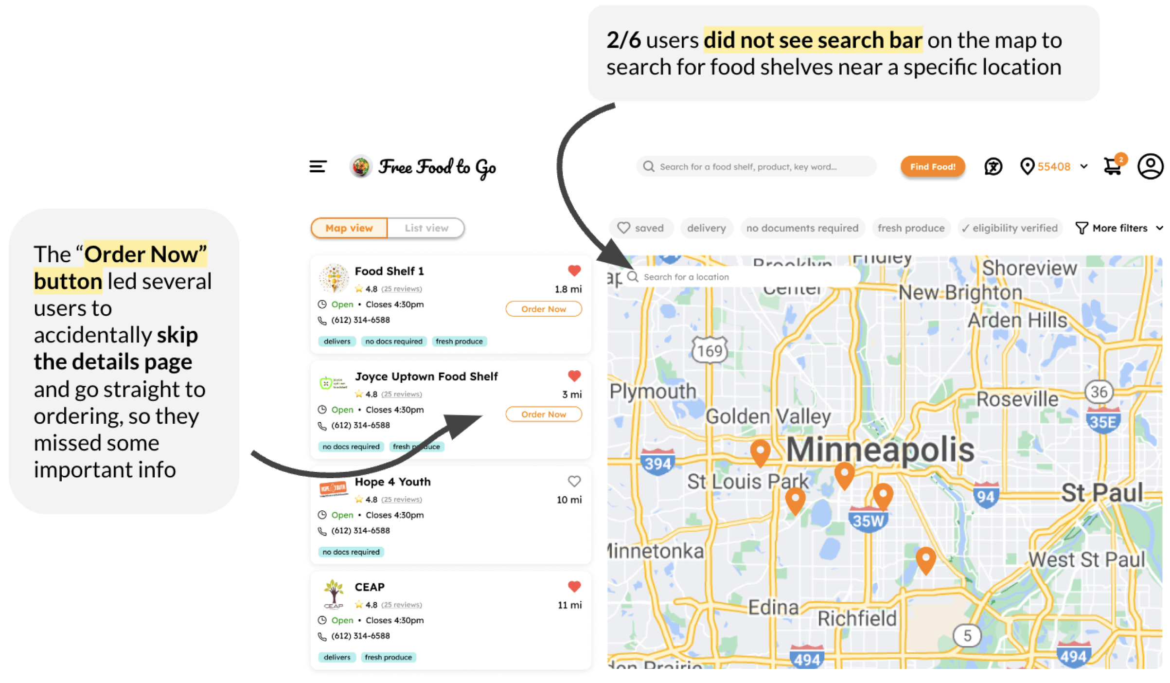 Based on their feedback, I determined that the overall design of the website was effectively improving users’ experience of accessing free food.