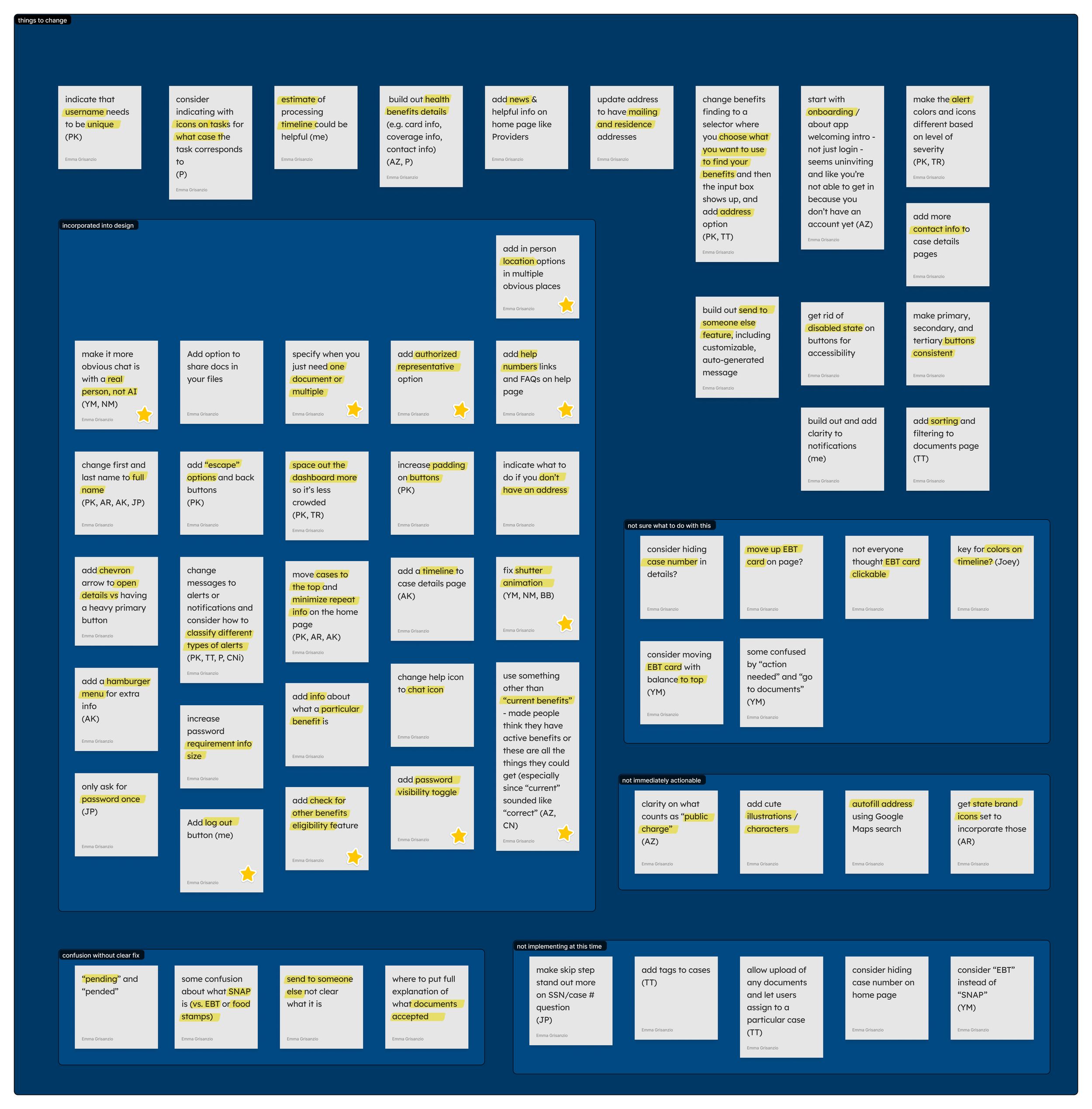 I pulled from my and others’ experiences and feedback to work out users’ needs for the design. Information sources included: