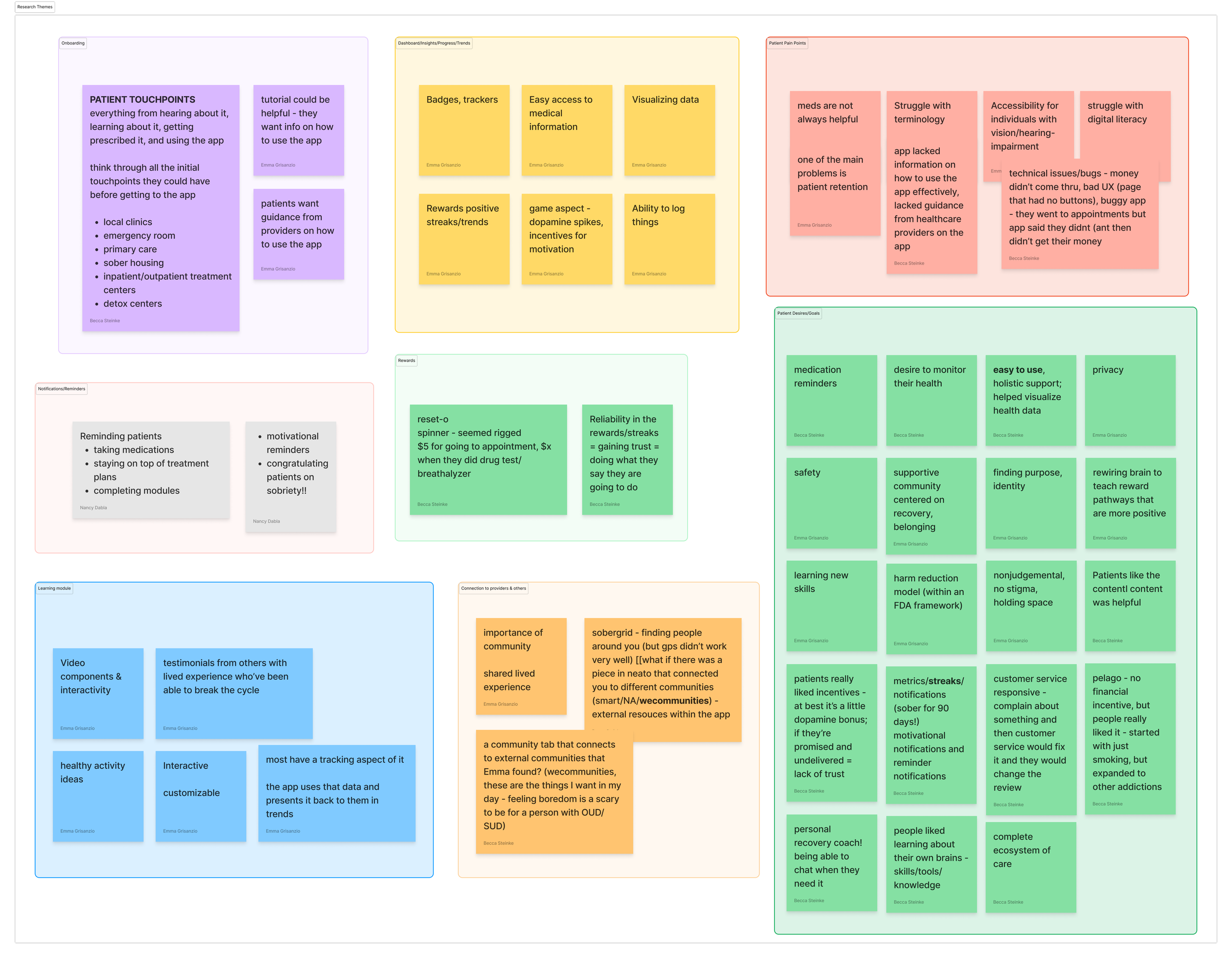 Community support - in our research, we found that community support was the most valued feature in many patients’ reviews of similar apps. This could take the form of a dedicated “coach” patients could chat with and/or opportunities to connect to other sober people with lived experience of addiction through a social network or online meetings. This essential aspect of community connection is currently absent from NEAT-O’s plans. My team and I considered making the “Resources” tab into a “Community” tab instead for this reason. I’m not sure what this feature should look like, but it is important to bring in some kind of community connection—especially since this therapy-based app is removing the human aspect normally included in therapy.